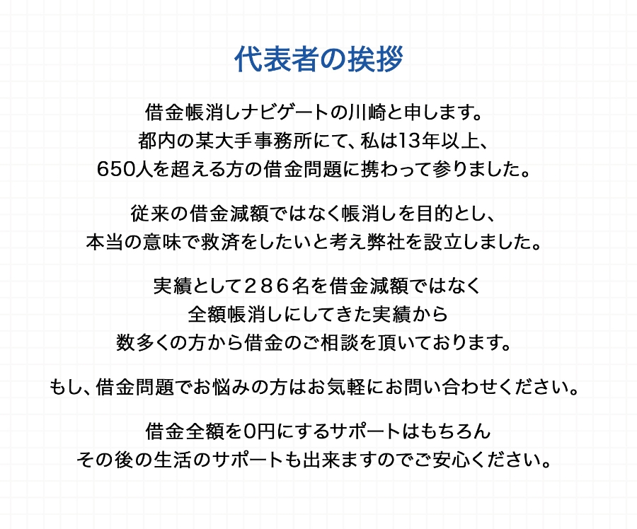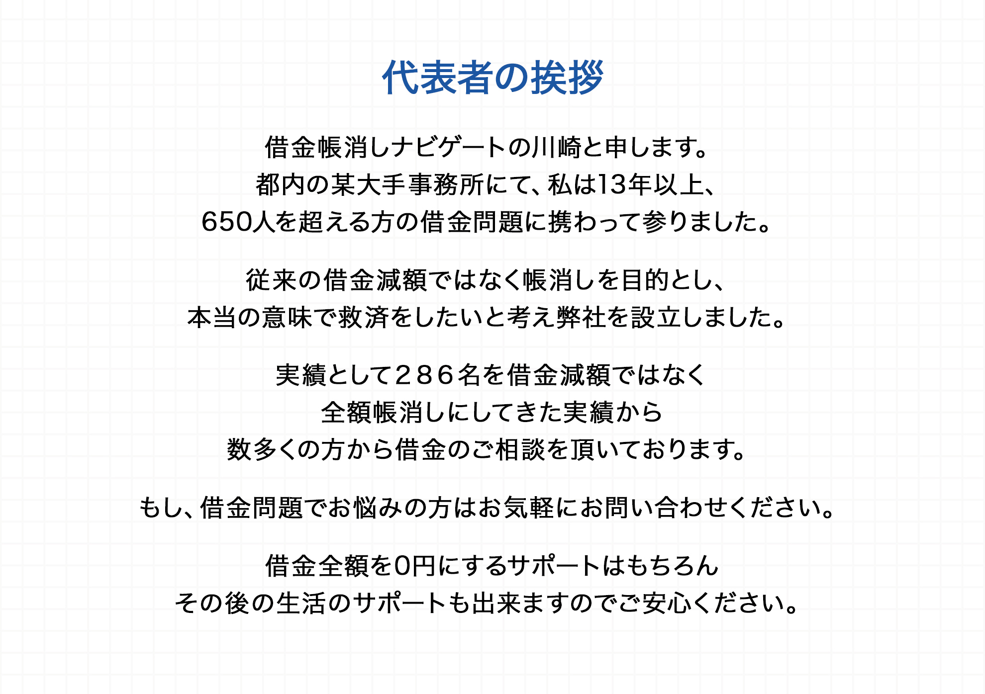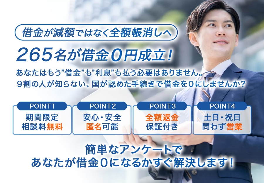 今回の借金帳消しの方法は、借金を減額するのではなく全て0にする国に認められた弊社独自の「完全合法」な申請になります。