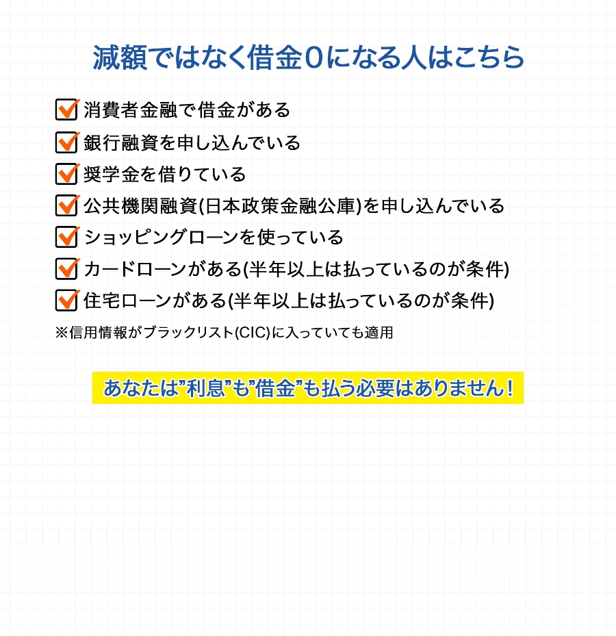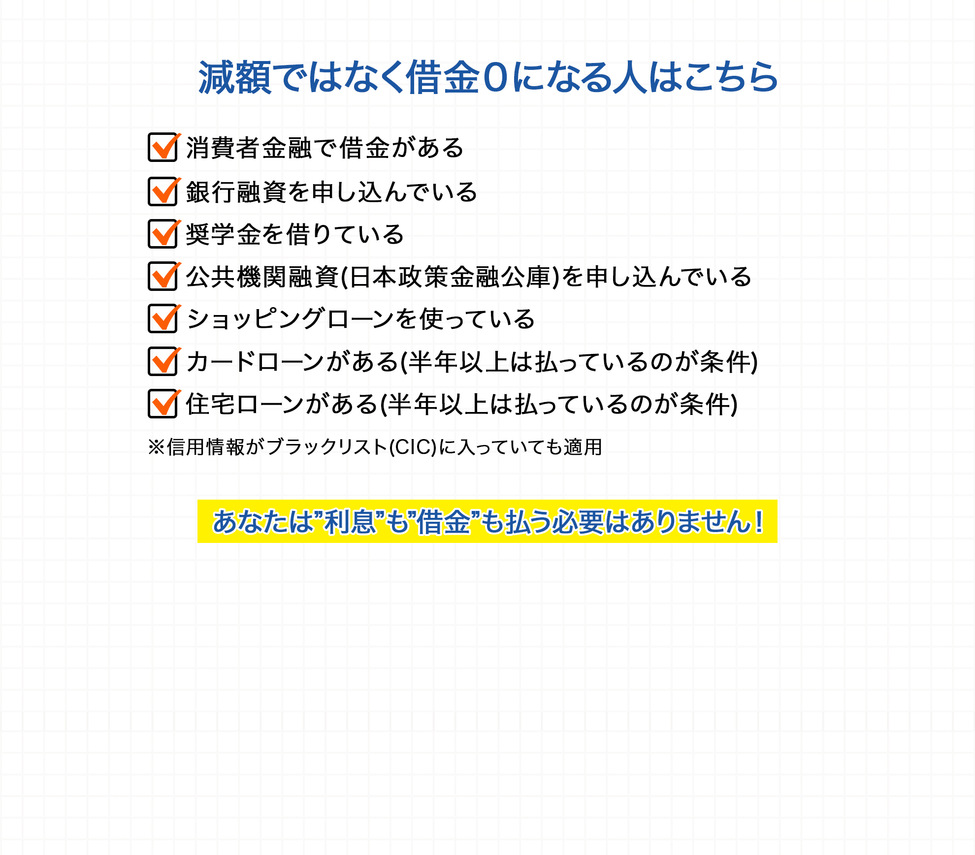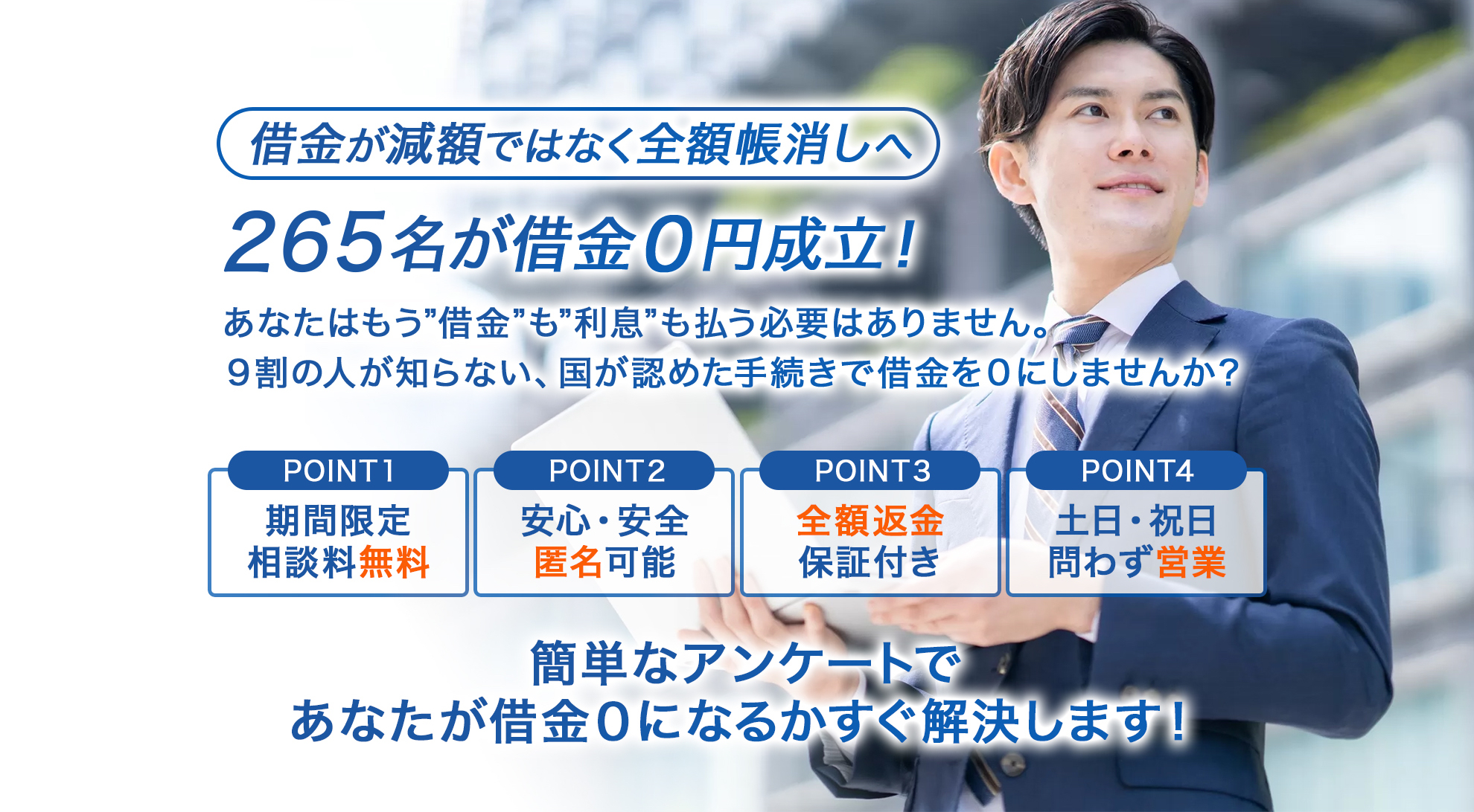 借金を払いながら利息を払い続けて生活を犠牲にする必要はありません。ぜひ、動画をご覧いただき「借金帳消し対象」かどうかご確認ください。